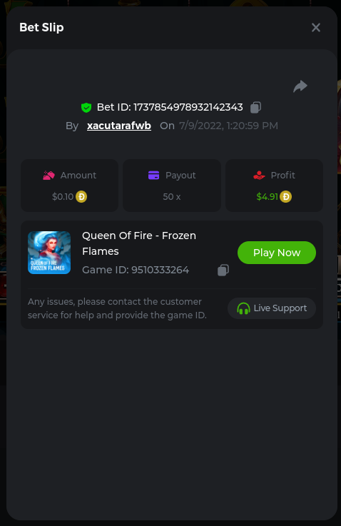 6. Queen Of Fire - Frozen Flames 50 x https://bc.game/sd/?sd=10OC9OJ4C6J95F Egyptian Ways 90 x https://bc.game/sd/?sd=10OBLEEATVYOER Savannah's Queen 54 x https://bc.game/sd/?sd=10OC9V4NHRP24Z