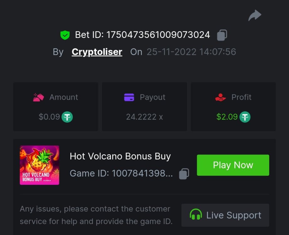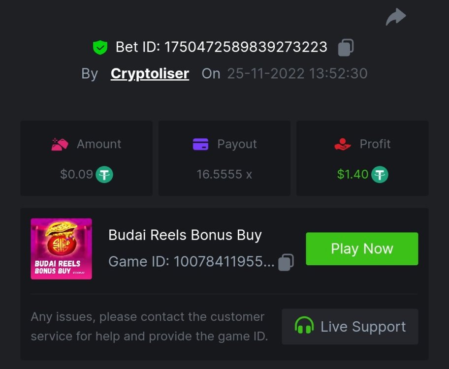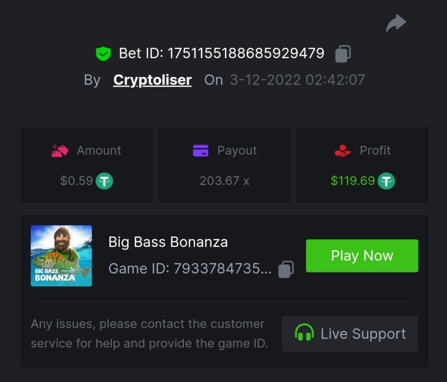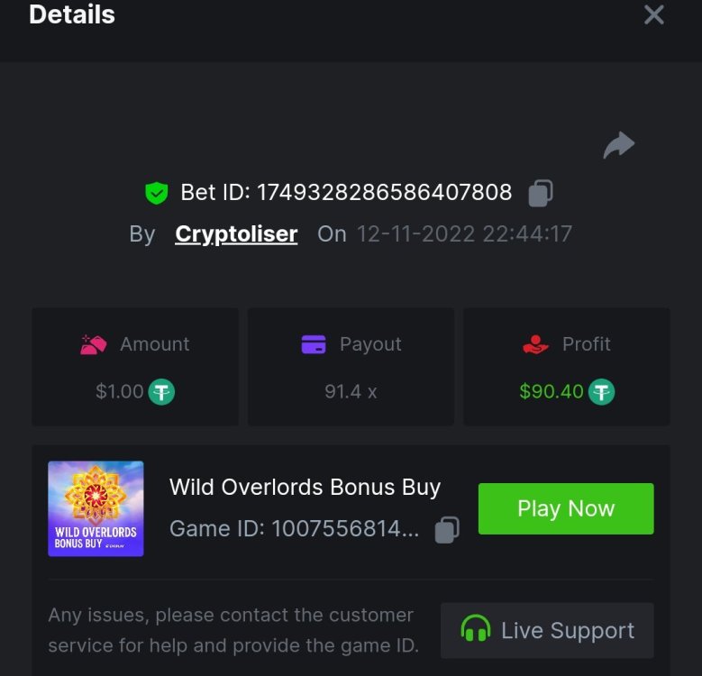 The Greatest Catch Bonus Buy - $0.1 https://bc.game/#/sd/10X157NAXY2LG3 Wild Overlords Bonus Buy - $0.1 https://bc.game/#/sd/10X22QICANQ4UR Gold Of Sirens Bonus Buy - $0.1 https://bc.game/#/sd/10X1Q4RF870T8Z Cycle of Luck - $0.1 https://bc.game/#/sd/10X25JHNBYPWCZ Juicy Gems Bonus Buy - $0.1 https://bc.game/#/sd/10X1LJ9WTDY903 -