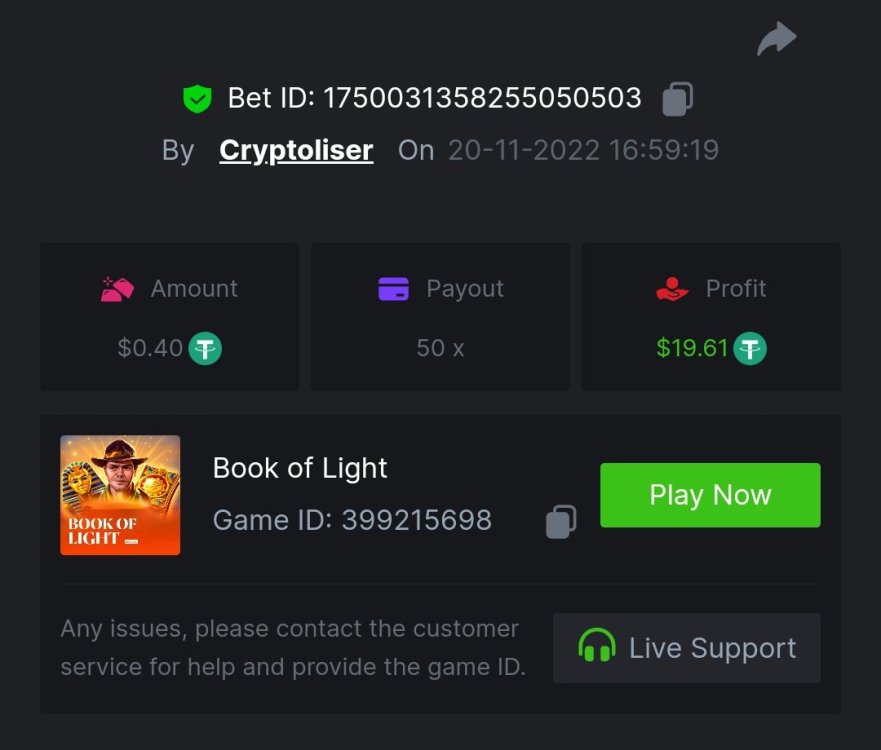 Book of Champions Reloaded - $0.05 https://bc.game/#/sd/10Y5G0EHHYTE6R Book of Champions - $0.1 https://bc.game/#/sd/10Y5JPRE4HI2OJ Lucky score - $0.1 https://bc.game/#/sd/10Y5H83QB80O43 Book of Champions - World Glory - $0.1 https://bc.game/#/sd/10Y5J5DE2DPIC3 -