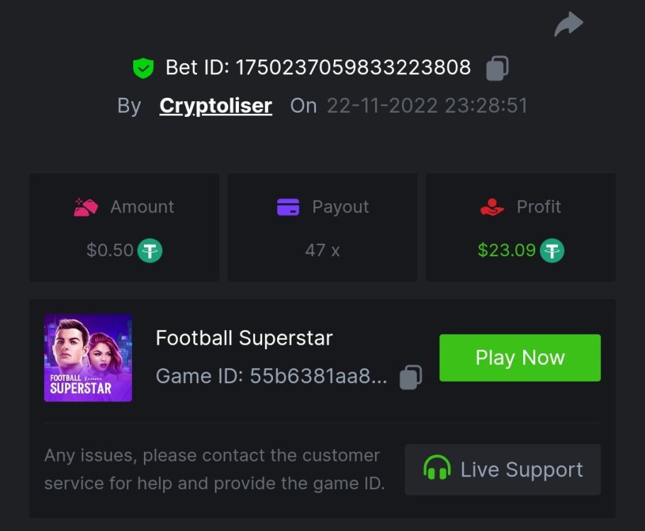 Knockout Football - $0.2 https://bc.game/#/sd/10XPYAWY0PDQ1F Spin & Score Megaways - $0.2 https://bc.game/#/sd/10XPYMEXMJ9XXV Football: Champions Cup - $0.2 https://bc.game/#/sd/10XQYLXZR4HHCJ Football Super Spins - $0.3 Football Star - $0.5 https://bc.game/#/sd/10XR06ID5EXRF7 Football Superstar - $0.5 https://bc.game/#/sd/10XQXIBE4Y7FV7