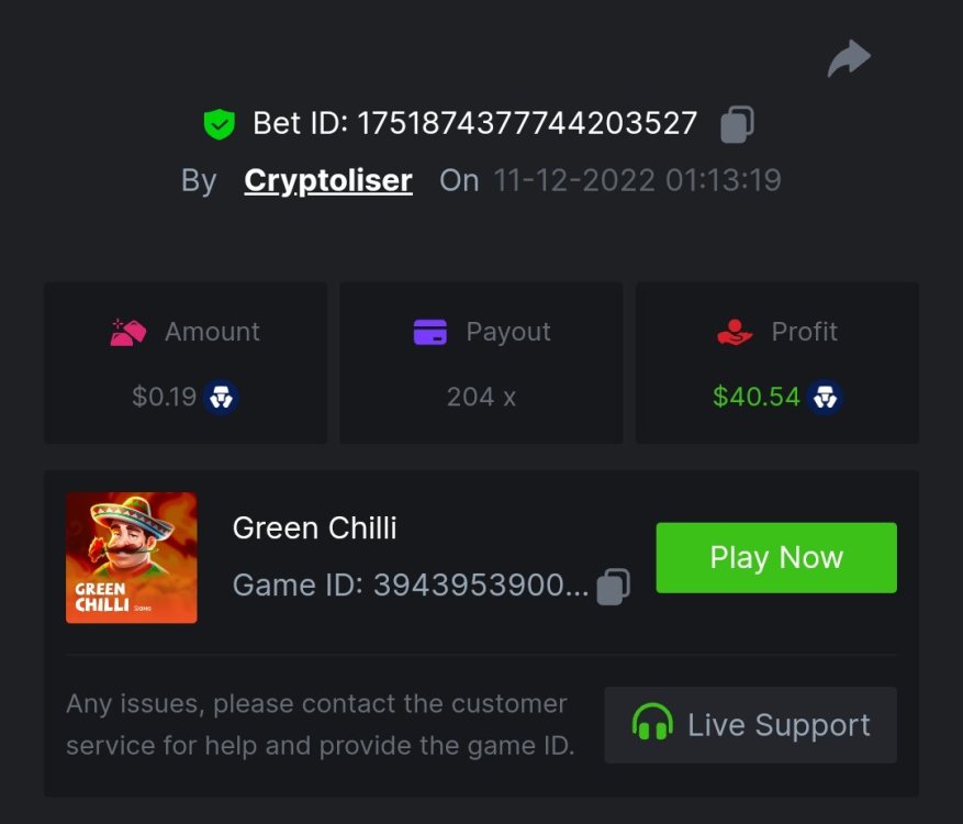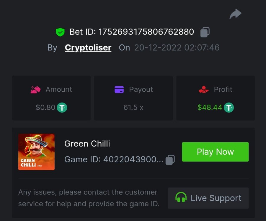 Green chilli - $0.2 https://bc.game/#/sd/10XOCC8WY49QMR Big heist - $0.1 https://bc.game/#/sd/10XPWKTFB31AMR Candy boom - $0.2 https://bc.game/#/sd/10XPULLOJNUEXF Sun of Egypt 3 - $0.25 https://bc.game/#/sd/10XPV5PGDYT5AR -