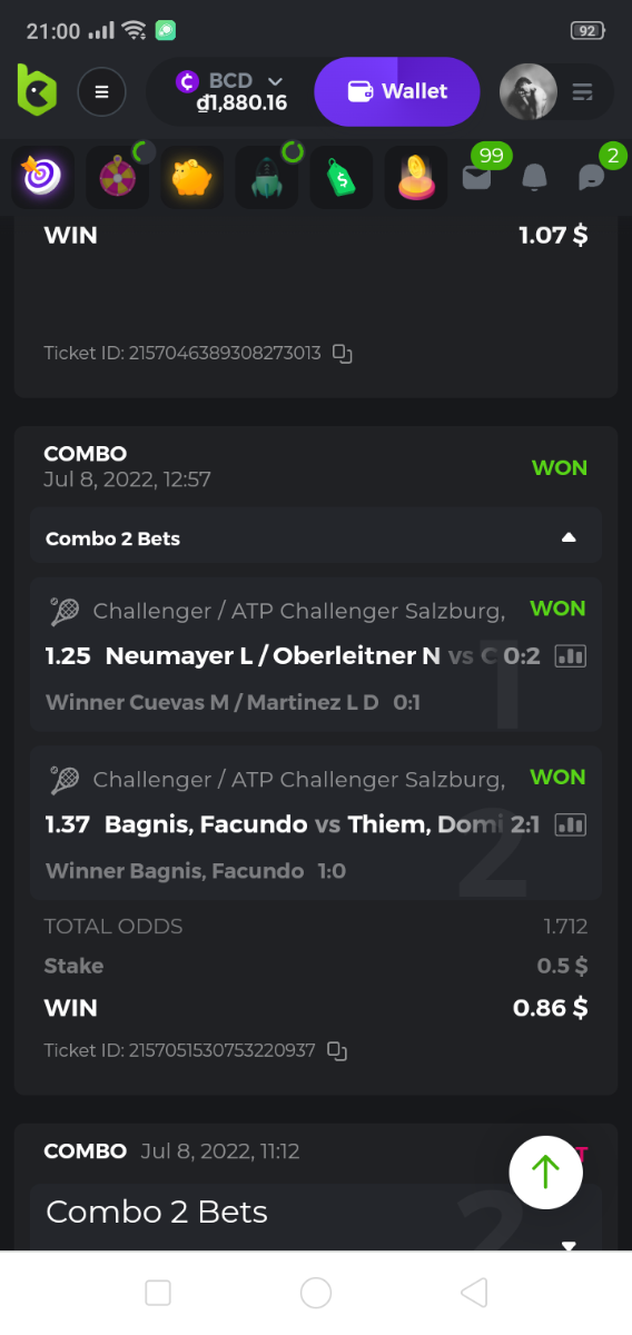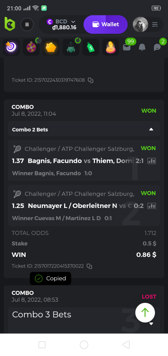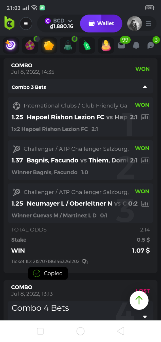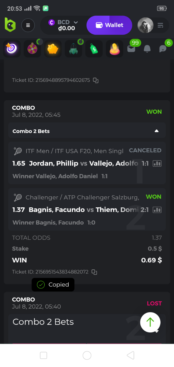 Moderator Mat Posted July 5, 2022 Moderator Share Posted July 5, 2022 $250 - BC.GAME SPORTS PARLAYS CHALLANGES #11 Start: 05, July 00:00 UTC Ends: 10, July 23:59 UTC Hello, ladies and gentleman! Sports Parlay Challenges #5! With a prize pool of $150, the Top 5 takes home a grand prize, and the remaining $40 will be split among all other entrants! What is the challenge? Place a Sports Parlay/Combo Bet to qualify for the challenge Only 1 parlay per match. A parlay consists of two or more sports bets on a single ticket with a higher multiplier. The ODDS for each game will be added up and counted as total points. Minimum VIP No Minimum VIP Level Minimum payment There is no minimum multiplier, however, only the top 5 winning parlay multipliers will win the grand prize! Minimum bet size Equivalent to US$ 0.50 Eligible currencies All cryptocurrencies are eligible (except JB) Rewards available 1st place.......$70 2nd place.....$50 3rd Place...... $30 4th Place...... $20 5th Place...... $10 6th Place...... $5 7th Place...... $5 The remaining $60 will be split among all other participants who meet the minimum requirements and minimum stake. How to enter: To participate, post your Ticket ID, along with your Parlay link, as a reply to this thread as follows: Link bet: https://bc.game/sports/?bt-path=%2F%3FbtBookingCode%3D561A9D1 + Ticket ID 2126602890796736992 If you don't know how to get your sports betting link, go here! Along with the screenshot of your accumulated ticket. Ticket ID 2126602890796736992 If a selection results in a void or push, the bet will remain eligible as long as it remains equal to or greater than a triple bet and meets the odds requirements. Bets withdrawn will not be counted. Hedging is strictly not allowed Please combine all your hits into a SINGLE post. Edit your existing post to get additional hits, don't create a new post. Bets must be placed during the time window specified above. This thread will automatically lock when the time period ends. One (1) entry per family. If someone finds multiple prizes, they will be disqualified from the challenge as well as all future challenges. Failure to follow the instructions will result in the cancellation of your submission. By entering this challenge, you acknowledge that BC.Game has final decision rights over results and placement. All prizes will be paid out in BCD within 72 hours of completing the challenge. Link to comment Share on other sites More sharing options...