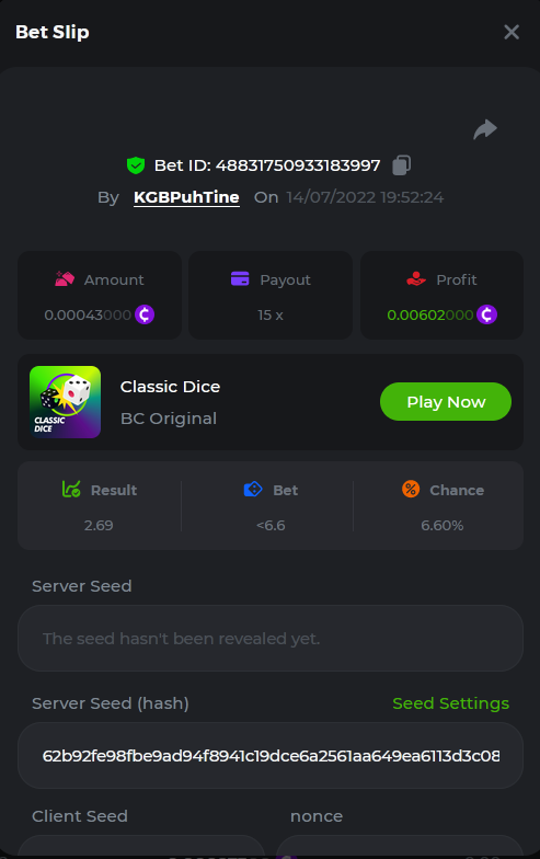 Member AkSyEn03 Posted July 14, 2022 Member Share Posted July 14, 2022 Challenge DICE Quoi de mieux pour finir la semaine qu'avec un challenge Dice classic de 48H ?Début 14/07/2022 a 16h fin le 16/07/2022 16h atteindre autant de multiplicateurs que possible dans la liste suivante... x7 X10 X13 X15 X20 X50 X70 X100 X130 X150 X200minimun pour etre qualifier> 3points Chaque pari correct comptera pour un point, les joueurs avec le plus de points seront les gagnants. si le nombre de joueurs augment le prix aussi !! Récompenses1ère place... 10BCD 2ème place... 7BCD 3ème place... 4BCD Règles :Ne publiez pas d'anciens paris Vous devez gagner le pari Vous ne pouvez gagner qu'une seule place Si vous enfreignez l'une des règles, votre pari sera annulé. Vous ne pouvez pas enregistrer les paris pour la fin, dès qu'ils sont corrects, ils doivent les partager.conditions mise minimum > 0.0001$ et jb interdis Il n'y a pas de niveau minimum Être de la chambre Française Vous ne devez avoir qu'un seul commentaire. Si vous souhaitez ajouter plus de paris, modifiez simplement le commentaire et ajoutez-les. En cas d'égalité, le joueur qui devine le pari en premier gagne. Comment entrer Accédez au jeu pour sélectionner votre ID de pari, cliquez sur l'icône Partager (↷) puis sur Copier le lien. Revenez au fil de discussion, collez le lien dans le champ "Répondre à ce sujet..." Par exemple : https://bc.game/sd/?sd=10IKIK3BP5T4PF Dans le même message, téléchargez une capture d'écran de votre victoire en cliquant sur l'ID de jeu AVEC le mode AFFICHAGE EN USD ACTIVÉ (accessible en bas du menu déroulant de votre portefeuille en haut) et Soumettre une réponse. Prêt! De cette façon, nous pouvons nous assurer que votre pari répondait à l'exigence minimale au moment de le placer : ❤ bonne chance a tous❤ Link to comment Share on other sites More sharing options...