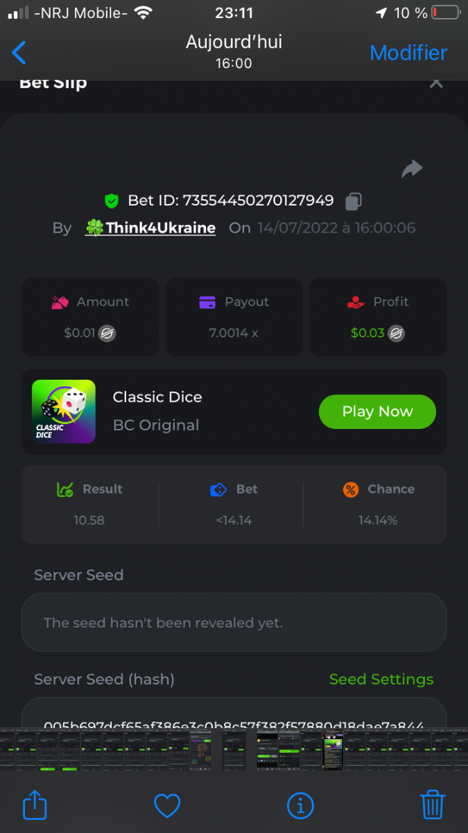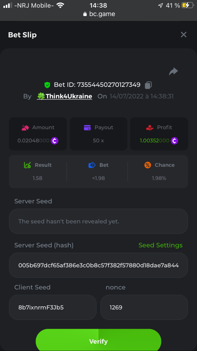 Topo74 Posted July 14, 2022 Share Posted July 14, 2022 Désolée mes multiplicateurs poster avant (premier poste ) n’étaient pas dans les bonnes horaires (avant 16h ) ceux ci sont ok pardon x7 https://bc.game/sd/?sd=10OPG2UJTX2J2R x10 https://bc.game/sd/?sd=10OPGD83ZUBJTF x13 https://bc.game/sd/?sd=10OPGH6OR1SHZN x15 https://bc.game/sd/?sd=10OPGKDRSBRQJ7 x20 https://bc.game/sd/?sd=10OPGQKF6QKQVN x50 https://bc.game/sd/?sd=10OPH8HWG9WUFN x70 https://bc.game/sd/?sd=10OPHC2O4R7TAR x100 https://bc.game/sd/?sd=10OPHJA3W7U0WJ x130 https://bc.game/sd/?sd=10OPHQ04POF8YB x150 https://bc.game/sd/?sd=10OPHX5QKTEBKJ x200 https://bc.game/sd/?sd=10OPI3Q7YVOS2B Link to comment Share on other sites More sharing options...