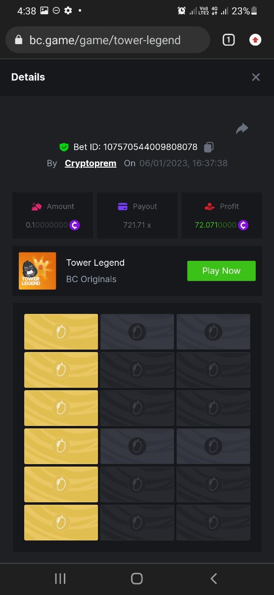 Black Tiger Posted January 6, 2023 Share Posted January 6, 2023 Read Carefully Before Start To Hunt Daily Challenges #122 : Tower Legend Hunt :Win the highest pay outMin Payout requirement 100xMin Level 4️Duration Starting : Now End time : 23.59 UTC Time How to Join? Make screenshot + paste your bet link + UID or Profile link Mini bet amount - 0.01$ Any coin allowedReward Prizes 1st Place....... $7 BCD2nd Place..... $5 BCD3rd Place...... $4 BCD 🎖4th Place......$3 BCD5th - 10th Place......$1 BCD 🏵 Winners will be announcing next day after Roll Point 1 Link to comment Share on other sites More sharing options...