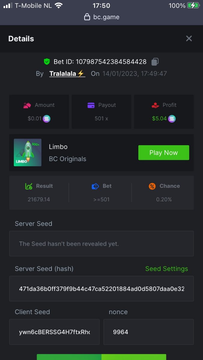 MasterO_O Posted January 14, 2023 Share Posted January 14, 2023 1 minute ago, jhonncueva said: https://bc.game/#/sd/111C205X8U7F2R /cdn-cgi/mirage/4dce7552890ad645f50c167aecc75f9d7115252aa97055c4c745bd25e72e6774/1280/https://forum.bc.game/uploads/monthly_2023_01/image.png.a525b78f97d3f36d62a7a577fcf0665c.png Before posting the challenge Link to comment Share on other sites More sharing options...