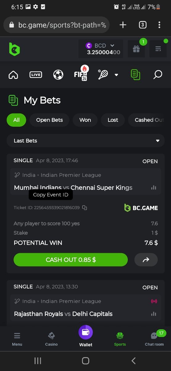 Moderator LuCifer_BcGAmE Posted April 12, 2023 Author Moderator Share Posted April 12, 2023 Thanks for taking part of our First IPL forum EVENTWinner List of IPL#1 magicckk (odds=8.20) Reward ; 50 BCD MasterO_O (odds=8.13) Reward : 30 BCD U-day (odds = 7.63) Reward : 20 BCD Ravi Thapa (odds=6.50) Reward : 10 BCD Rakorbakc (6.19) Reward : 05 BCD All winners get you Reward with in 48 hrs Through Forum pm. Link to comment Share on other sites More sharing options...