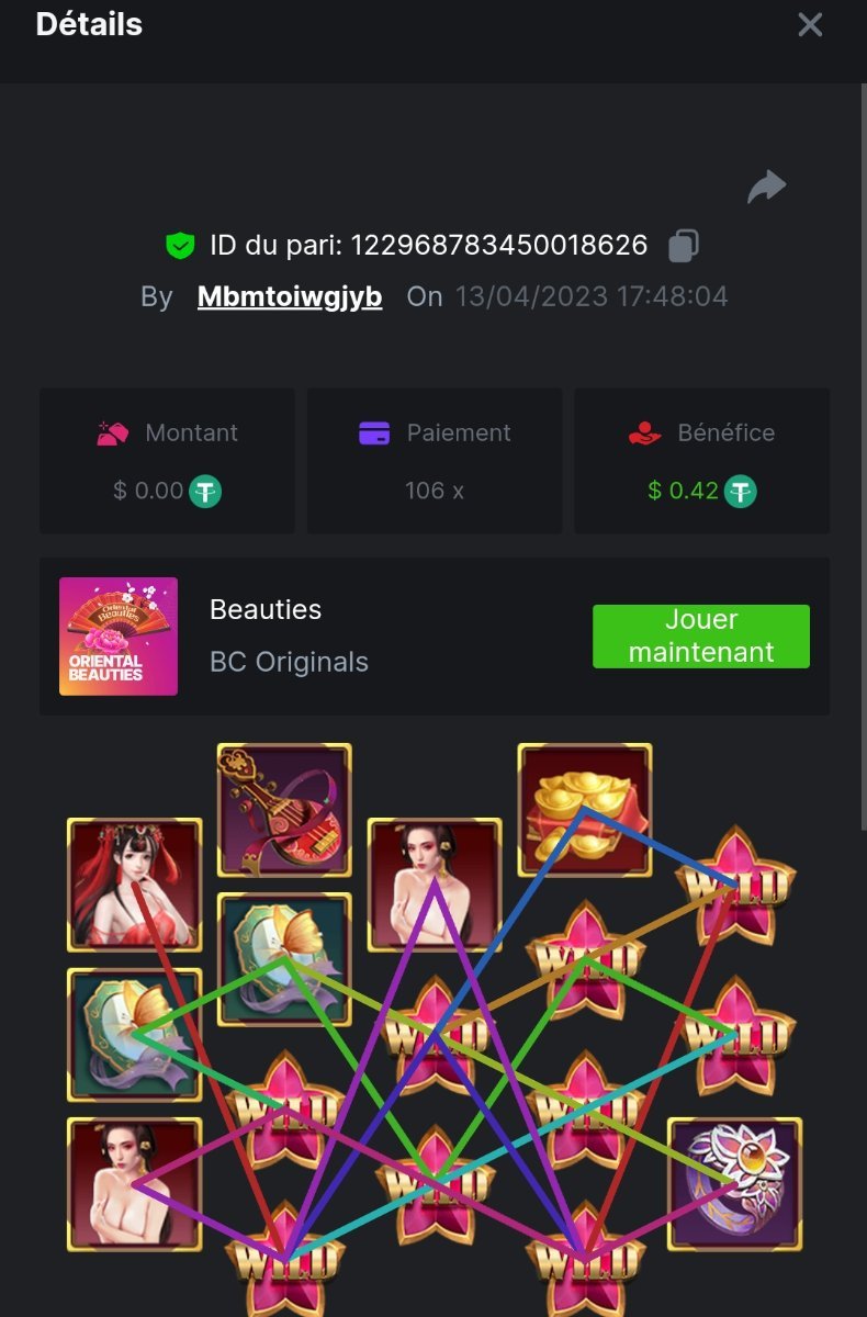 Accédez au jeu pour choisir votre ID de pari, cliquez sur l'icône Partager (↷) puis sur Copier le lien Dans le même message, téléchargez une capture d'écran de votre gain en cliquant sur l'ID du jeu et En mode USD ON