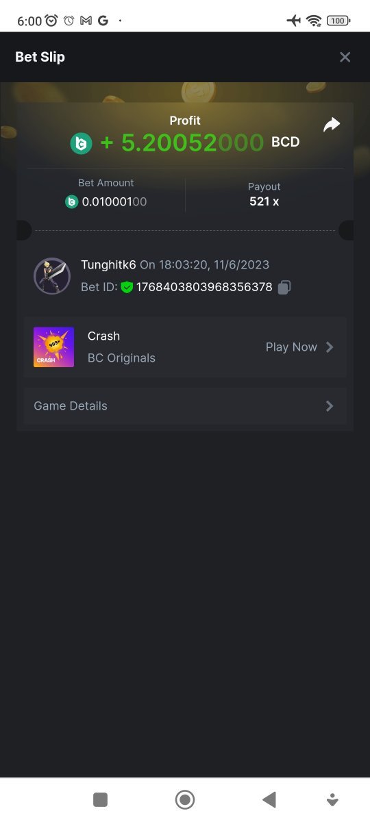 Maksypro Posted June 11, 2023 Share Posted June 11, 2023 Read Carefully Before Start To Hunt Daily Challenges #263 CRASH Hunt : Win the highest pay out Min Payout requirement 80x Min Level 4 ๏ธDuration Starting : Now End time : 23.59 UTC Time How to Join? Make screenshot + paste your bet link + UID or Profile link Any coin, with min bet 0.01 USD is allowed (jb/bb/bcl not allowed) Reward Prizes 1st Place.....$7 BCD 2nd Place.....$5 BCD 3rd Place.....$4 BCD 4th Place.....$3 BCD 5th Place.....$2 BCD ๐ต Winners will be announcing next day after Roll Point! 2 Link to comment Share on other sites More sharing options...