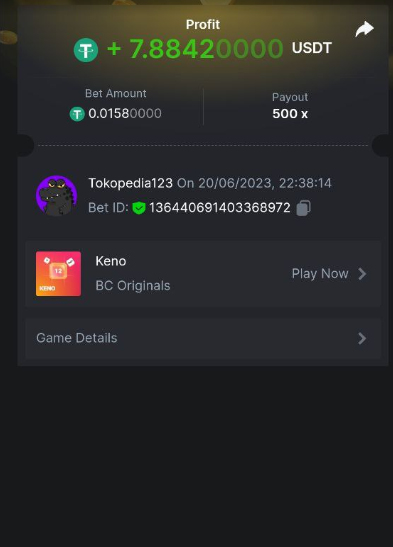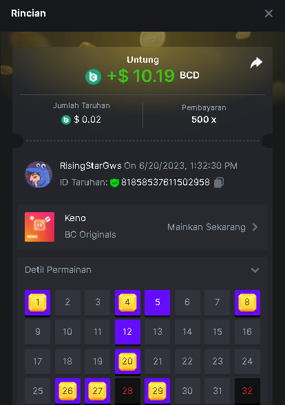 Maksypro Posted June 20, 2023 Share Posted June 20, 2023 Read Carefully Before Start To Hunt Forum Daily Challenges #272 Keno Hunt : Win the highest pay out Min Payout requirement 90x Min Level 4 ๏ธDuration Starting : Now End time : 23.59 UTC Time How to Join? Make screenshot + paste your bet link + UID or Profile link Any coin, with min bet 0.01 USD is allowed (jb/bb/bcl not allowed) Reward Prizes 1st Place.....$7 BCD 2nd Place.....$5 BCD 3rd Place.....$4 BCD 4th Place.....$3 BCD 5th Place.....$2 BCD ๐ต Winners will be announcing next day after Roll Point! Link to comment Share on other sites More sharing options...