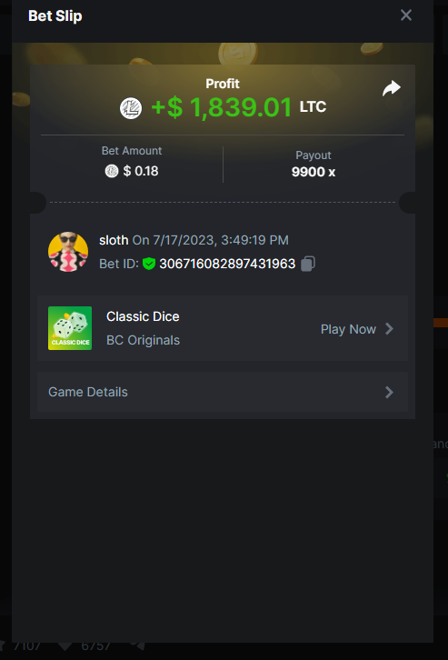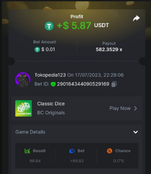 Moderator Giandreas Posted July 17, 2023 Moderator Share Posted July 17, 2023 ย Read Carefully Before Start To Hunt Forum Daily Challenges #299 Classic Dice Hunt : Win the highest pay out Min Payout requirement 20x Min Level 4๏ธDuration Starting : Now End time : 23.59 UTC Time How to Join? Make screenshot + paste your bet link + UID or Profile link Any coin, with min bet 0.01 USD is allowed (jb/bb/bcl not allowed)Reward Prizes 1st Place.....$7 BCD 2nd Place.....$5 BCD 3rd Place.....$4 BCD 4th Place.....$3 BCD 5th Place.....$2 BCD ๐ต Winners will be announcing next day after Roll Point! 1 Link to comment Share on other sites More sharing options...