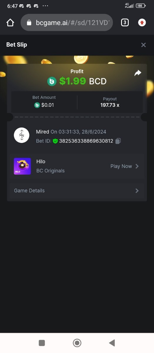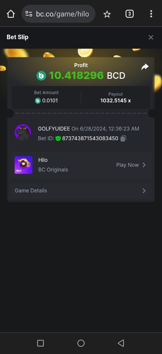 Moderator Giandreas Posted June 27, 2024 Moderator Share Posted June 27, 2024 Read Carefully Before Start To Hunt Forum Daily Challenges #644Hunt : HiLo Win the highest pay out Min Payout : x20 Min Level 10️Duration Starting : Now End time : 23.59 UTC Time How to Join? Make screenshot + paste your bet link + UID or Profile link Any coin, with min bet 0.01 USD is allowed (jb/bb/bcl not allowed)Reward Prizes 1st Place.....$7 BCD 2nd Place.....$5 BCD 3rd Place.....$4 BCD 4th Place.....$3 BCD 5th Place.....$2 BCD 🏵 Winners will be announcing next day after Roll Point! Link to comment Share on other sites More sharing options...