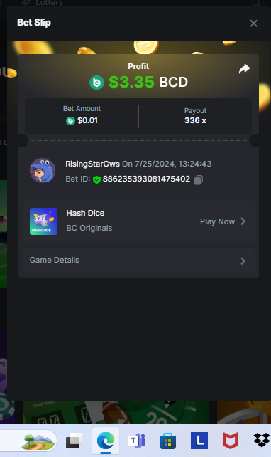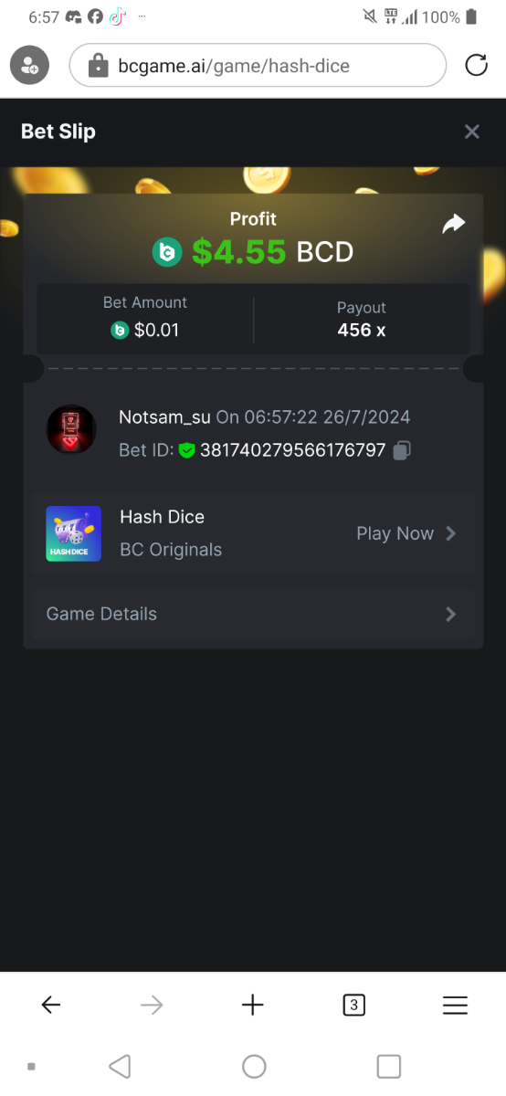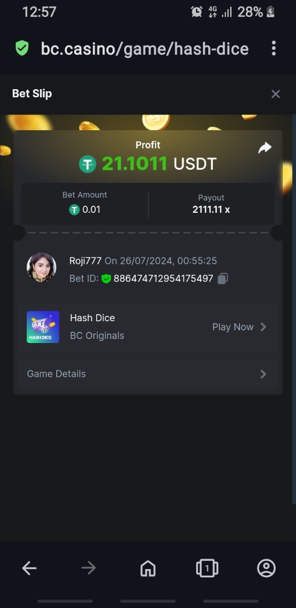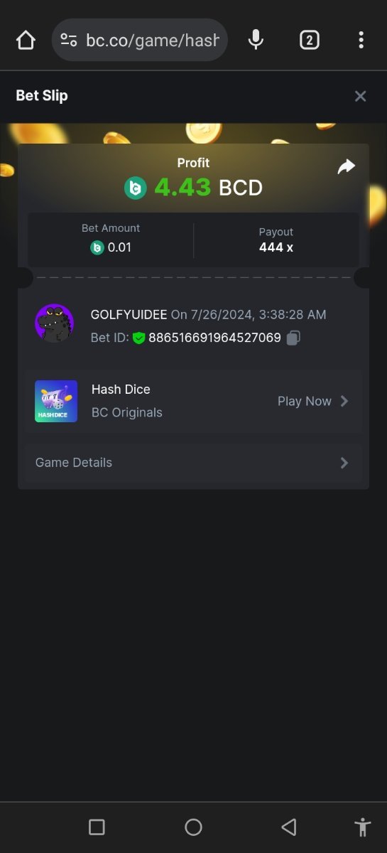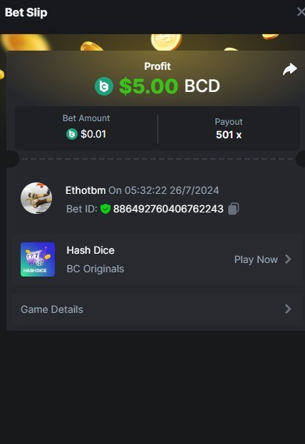 Moderator Giandreas Posted July 25, 2024 Moderator Share Posted July 25, 2024 Read Carefully Before Start To Hunt Forum Daily Challenges #672Hunt : Hash Dice Win the highest pay out Min Payout : x20 Min Level 10 ️Duration Starting : Now End time : 23.59 UTC Time How to Join? Make screenshot + paste your bet link + UID or Profile link Any coin, with min bet 0.01 USD is allowed (jb/bb/bcl not allowed) Reward Prizes 1st Place.....$7 BCD 2nd Place.....$5 BCD 3rd Place.....$4 BCD 4th Place.....$3 BCD 5th Place.....$2 BCD 🏵 Winners will be announcing next day after Roll Point! Link to comment Share on other sites More sharing options...