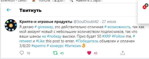 SoulDoubt Posted July 27, 2020 Share Posted July 27, 2020 I am doing a 50XRP giveaway competition on my twitter. The odds are extremely good for you as it's a new account with very few followers. Simply like, retweet and follow me to enter. I will be announcing and giving the prize on 3/8/20 the link to the entry tweet is below. Thanks for your support and good luck. https://twitter.com/Shane06782498/status/1287561326940717056?s=19 Link to comment Share on other sites More sharing options...