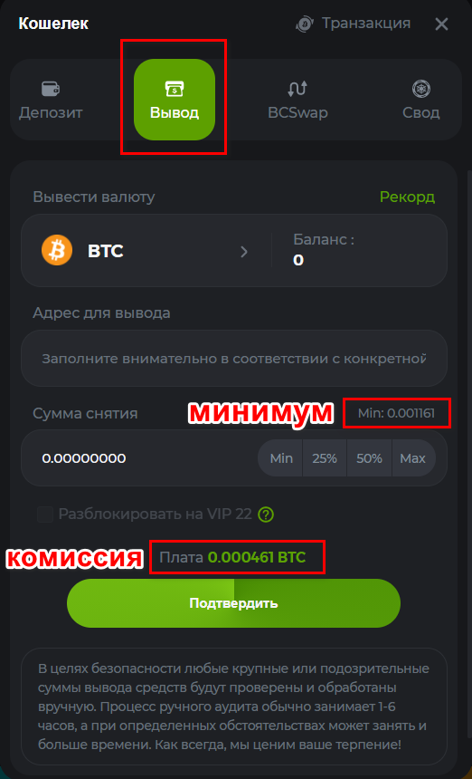 UGA-CHAGA Posted September 28, 2021 Share Posted September 28, 2021 Вывод крипты как в ручном так и в автоматическом режиме от 1 минуты до 24 часов. В ручную выводят крупные суммы и занимает это чуть больше времени, поскольку сначала проверяют на отсутствие ошибок и предпосылок к мошенничеству. Т.Е. были ли монеты выиграны или получены от других пользователей. Как то так. Link to comment Share on other sites More sharing options...