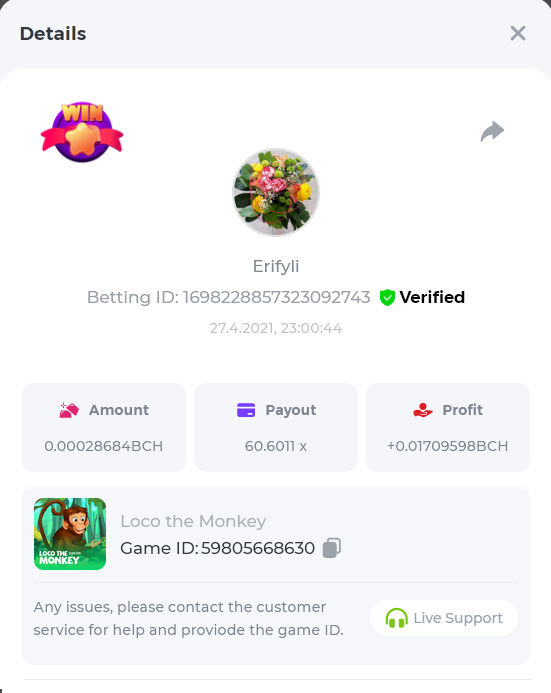 luntik777 Posted May 1, 2021 Share Posted May 1, 2021 my screenshot hidden im write ID in manual mode WildPops Betting ID : 1698452806487523456 Game ID : 10234224763 The Dog House Betting ID : 1698453893684649856 Game ID : 60069720677 Loco the Monkey Betting ID : 1698454418032199296 Game ID : 60070367292 Link to comment Share on other sites More sharing options...