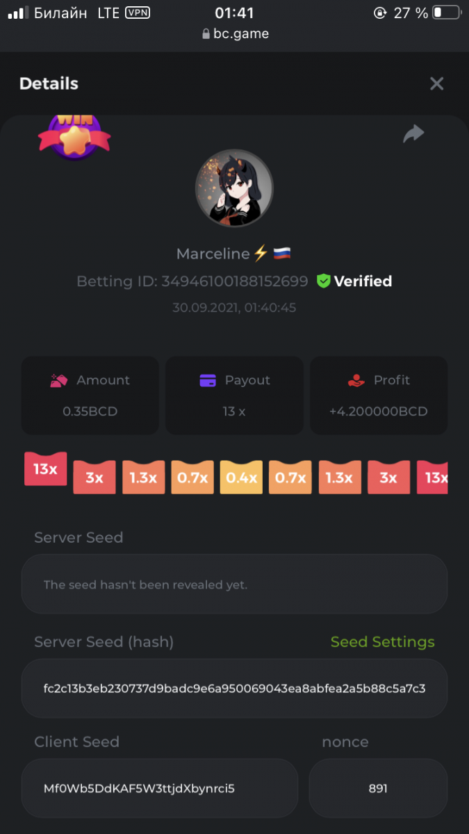 Next person to post a 420x with at least min bet will receive a 30BCD bonus.