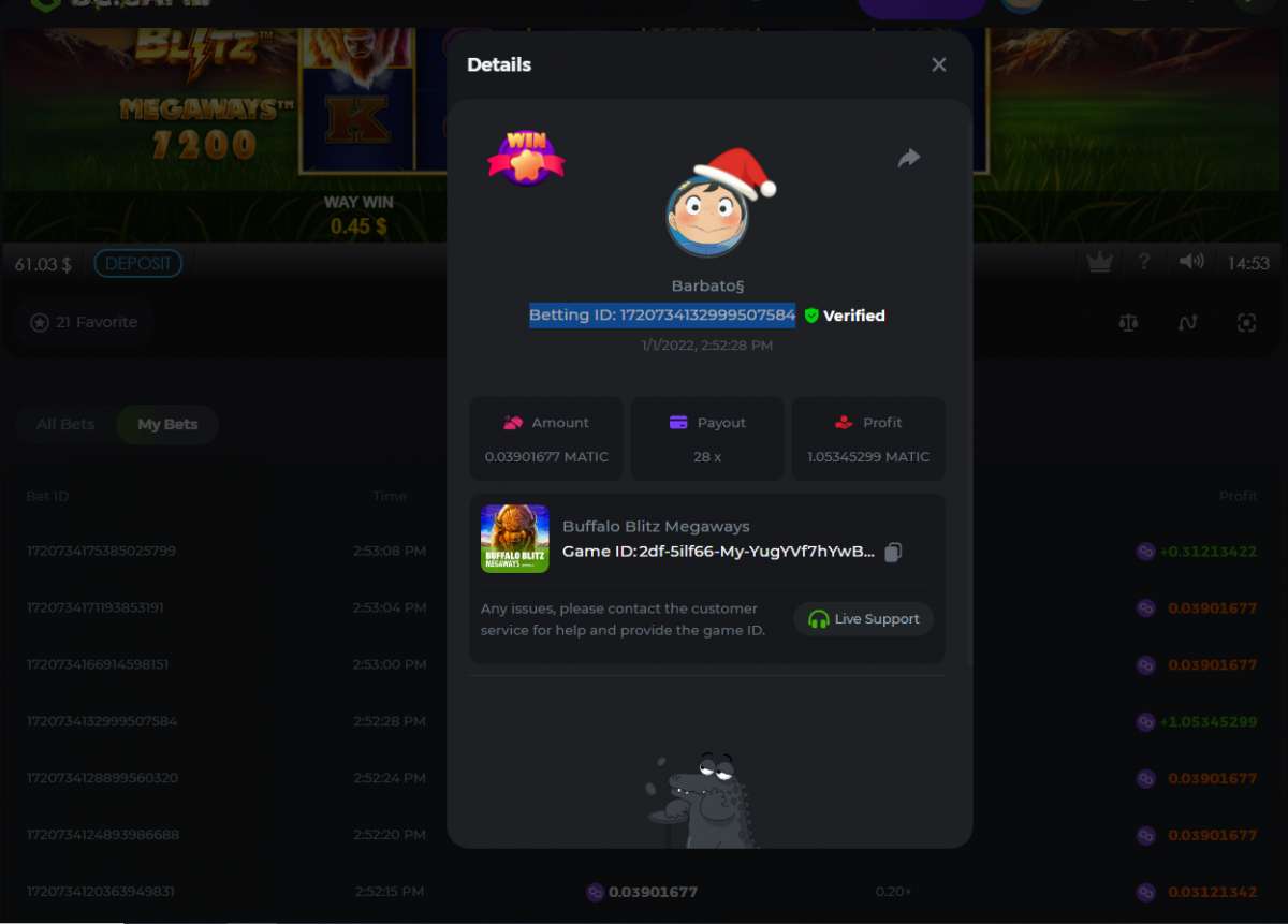 Event Team Niobium Posted January 10, 2022 Author Event Team Share Posted January 10, 2022 Congratulations to the winners and well done to everyone who participated in the Top Tier Playtech Battle. We had 25 valid entries, and all prizes have now been distributed! Check out the detailed ranking below Ranking 1st $500 - Hoya_ 2nd $250 - Sleepiez 3rd$150 - Elpresidente 4th $100 - CivicMe 5th $50 - BARBAT0S 6th $50 - Erifyli 7th $50 - Mystogan69 8th $50 - Mbp19xx 9th $50 - Elsabe 10th $50 - Cryptoprem 11th $33.33 - luckypankaj 12th $33.33 - MaksatMe 13th $33.33 - Yhum 14th $33.33 - W0NGA 15th $33.33 - stomps 16th $33.33 - BitsCheerful 17th $33.33 - selena42 18th $33.33 - Флинт 19th $33.33 - Satoshimaker 20th $33.33 - DFdubG 21th $33.33 - Monstrous Eberto 22th $33.33 - Almaryoww 23th $33.33 - stopmuna 24th $33.33 - Kristalina 25th $33.33 - Mkulet 200x multiplier - Bounty winners! - $200 Prize pool 7 players completed the extra bounty, $28.57 each for each. $28.57 - Hoya_ $28.57 - Sleepiez $28.57 - CivicMe $28.57 - BARBAT0S $28.57 - Erifyli $28.57 - luckypankaj $28.57 - W0NGA Don't miss our upcoming weekly challenges. Check out all our available events here. Link to comment Share on other sites More sharing options...