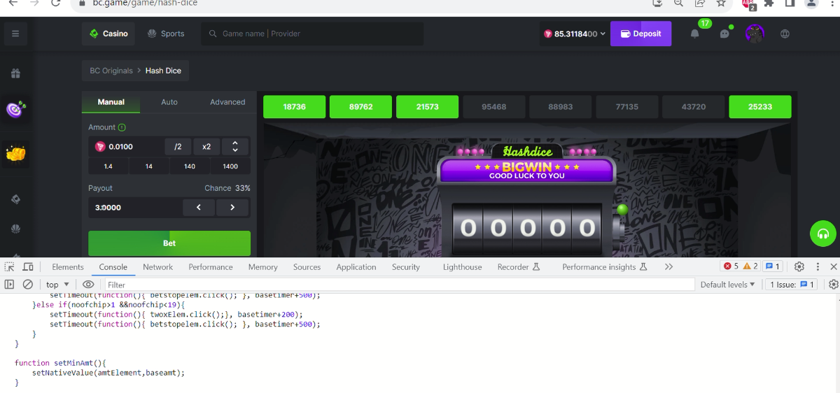 Hash Dice Script with Switching High/ Low and different strategies based on Martingale
