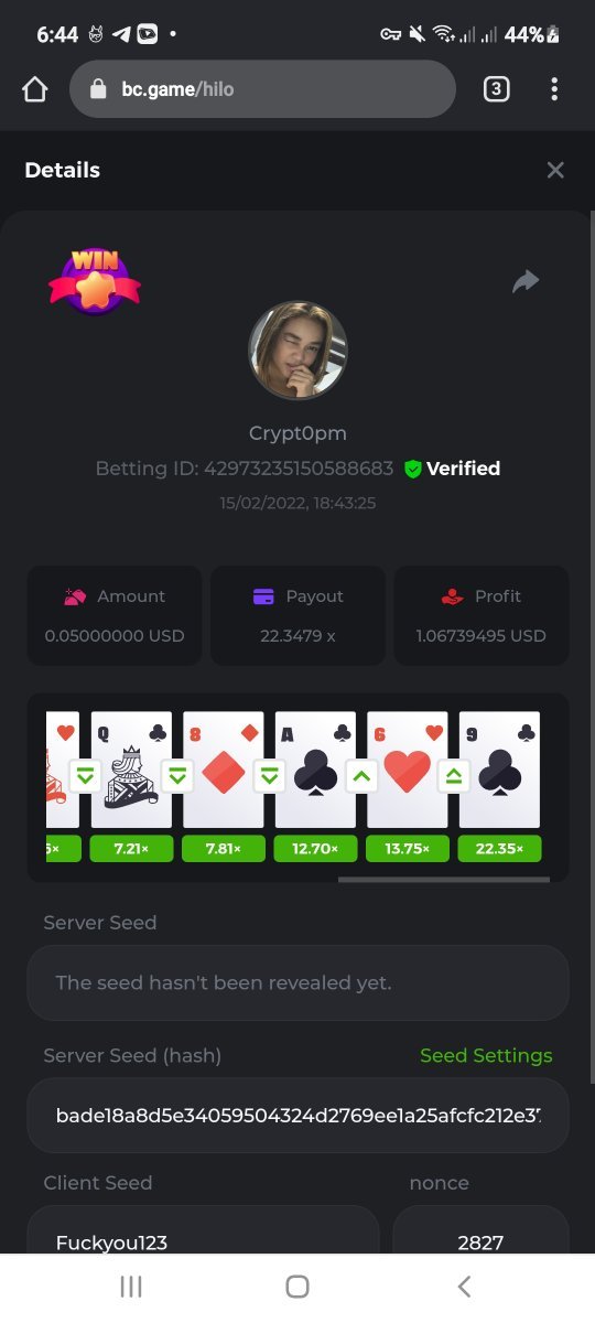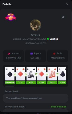 • Win the highest multiplier you can on in-house Hilo (Skipping cards is allowed). In the case of a tie, the participant with a higher bet amount will be given the advantage. If there is still a tie, the final winner is the player who posted or edited their post first.