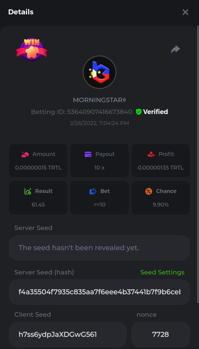 bassabar Posted February 26, 2022 Share Posted February 26, 2022 (edited) 1st bet: 0.0000001 trtl 2nd bet: 1 trtl Total points (1/0.0000001)*100= 1000000000 points 1st bet (10x): https://bc.game/sd/?sd=10F721097E4AVN 2nd bet (10x): https://bc.game/sd/?sd=10F722AXQSEEQB Edited February 26, 2022 by bassabar Link to comment Share on other sites More sharing options...
