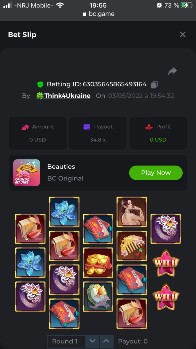 • Dans le même message,  téléchargez une capture  d'écran de votre victoire en cliquant sur l'ID de jeu AVEC le mode AFFICHAGE EN USD ACTIVÉ (accessible en bas du menu déroulant de votre portefeuille en haut) et Soumettre une réponse. Prêt! De cette façon, nous pouvons nous assurer que votre pari répondait à l'exigence minimale au moment de le placer :